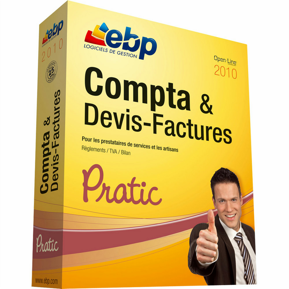EBP Compta & Devis-Factures Pratic. Minimum hard disk space: 1536 MB, Minimum processor: Intel Pentium 4, 2GHz, Compatible operating systems: Microsoft Windows XP (SP2)/Windows Vista (SP1)/ Windows 7. Language version: French