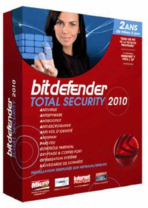 Editions Profil BitDefender Total Security 2010 - 2 Ans. Number of years: 2 year(s). Minimum hard disk space: 450 MB, Minimum RAM: 512 MB, Minimum processor: 800 MHz. Compatible operating systems: -Windows XP SP 2 (32/64 bits), -Windows Vista, SP 1 (32/64 bits), -Windows 7.. Platform: PC, Language version: French