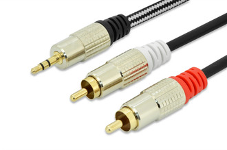 Ednet 2 x RCA/3.5mm 5m. Cable length: 5 m, Connector 1: 2 x RCA, Connector 2: 3.5mm. Cable colour: Black