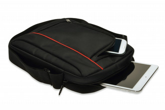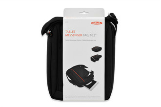 The ednet Tablet Messenger Bag can carry more than a tablet. It offers additional storage for smartphone and accessories like power banks, pens, etc. With its front, back and inner pockets. Furthermore, the nylon/ polyester material protects your capacity perfectly against commotions, scratches and splash water. With the aid of the strap will be assured a sercured wearing comfort. The ednet Tablet Messenger Bag impresses with its black finish that is underlined with red accents.