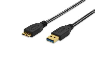 USB 3.0 connection cable, type A - micro B, M/M, 1.0m, USB 3.0 conform, UL, bl, cotton, gold