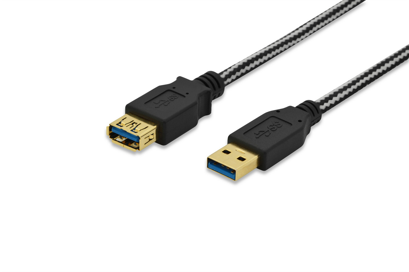 For extension of USB 3.0 cables or devices (with USB A plug). Datatransferrate up to 5 Gbps (Super-Speed).