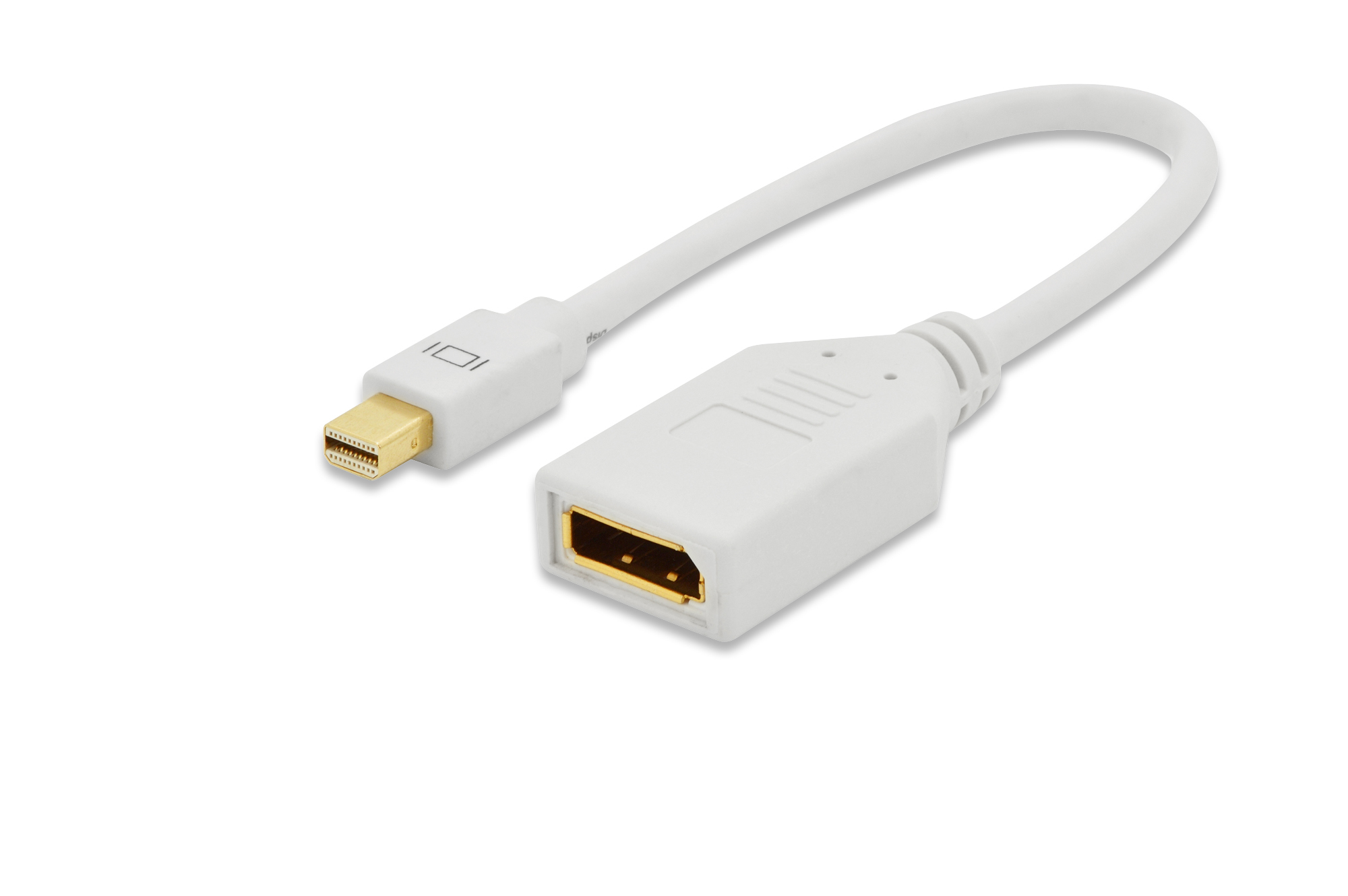 DisplayPort adapter cable, mini DP - DP, M/F, 0.15m, DP 1.1a compatible, UL, wh, gold
