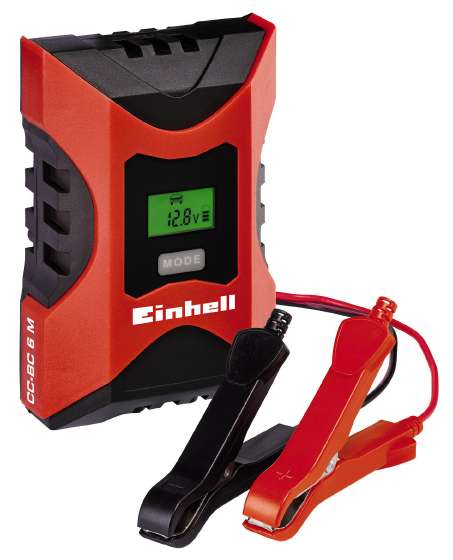 The Einhell CC-BC 6 M Battery Charger is an intelligent battery-charger device adapted to the technically highly developed, high-performance batteries found in modern vehicles. The micro-processor controlled unit is suitable for a wide range of vehicle battery types and comes with a variety of technical safety and maintenance mechanisms. The main focus of development has been on fast, battery-friendly charging, so that the longest possible lifetime with full performance is achieved. Operating the charger is more straightforward than with conventional devices thanks to a detailed charge status display. This Einhell all-rounder is suitable for gel batteries, AGM batteries and maintenance-free and low-maintenance lead-acid batteries. The CC-BC 6 M adapts automatically to the battery voltage of 6V and 12V vehicles. The multi-stage charging cycle of the Einhell Battery Charger is automatically monitored and adjusted by the micro-processor controller. The smart control electronics analyze the type and condition of the connected battery, and initiates the most appropriate charging mode to suit what is required. The trickle charge function protects and conserves the battery for a continuously optimum charge level. This makes the CC-BC 6 M suitable for all types of vehicle, particularly seasonal vehicles with long laidup times. Instead of allowing the battery to slowly discharge fully and risking an exhaustive discharge as a result, the battery is kept topped up to its optimum level using trickle charging. The trickle charge relieves the battery cells and extends working life, preventing avoidable, cost-intensive replacement of a defective vehicle battery. Cars, motorbikes and scooters are immediately ready for use at the start of the season. A winter charging mode has been specially developed for outside temperatures below 5° Celsius. Over-discharged batteries with intact cells can be restored using the rescue function on the CC-BC 6 M. The Einhell Battery Charger is equipped with automatic over-charge, short circuit and reverse polarity protection. These protection mechanisms not only protect the charger, but also the battery. The LCD battery voltage and charge status display shows at a glance the current state of the battery and the mode in which the charger is operating. Thanks to its fully-insulated clamps, the batteries can be connected easily and safely to the Einhell Battery Charger. The integrated wall bracket means that the charger can be stored safely and saves on space.