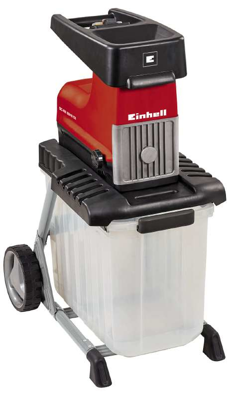 The GC-RS 2845 CB electric silent shredder is a robust and extremely powerful tool for the quiet shredding of thick materials such as branches as well as tree cuttings, hedge cuttings and garden waste at a high rate of throughput. Its long-lasting cutter drum powerfully draws the material into the large funnel opening. For easy and user-friendly transportation there is a robust chassis with wheels and a practical transport handle. The GC-RS 2845 CB has a switch for reversing the direction of rotation of the cutter drum. This is provided for the quick and effortless removal of blockages. The motor circuit breaker of this tool protects the motor against overloading. For optimum user safety, the transparent debris box is equipped with a safety switch which interrupts the power supply when the box is removed. Safe operation is also assured by a restart safeguard.