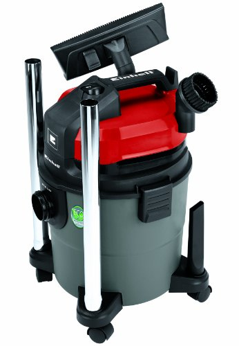 The ECO Power TE-VC 1820 is a high-quality, versatile wet and dry vacuum cleaner for thorough cleaning. Its Silent Bi-Turbo motor works very quietly and, thanks to the use of the most modern components, achieves high suction in return for 50% less power consumption. The 2-way system for exhaust and cooling air reduces the stress on the motor and makes the vacuum cleaner a neat solution on all counts. The 20 liter plastic tank permits high mobility while providing enough capacity for small assignments in and around the home. The TE-VC 1820 has a practical blow connector for the user-friendly blow-cleaning of inaccessible areas. A foam filter protects the motor against soiling during wet vacuuming. This wet and dry vacuum cleaner comes with a 2.5 m long suction hose with air regulator, a two-piece stainless steel suction tube, a reversible wet and dry floor nozzle, an adapter for the connection of electric devices, a crevice nozzle and an upholstery nozzle, so it is prepared for nearly every assignment. Intelligent plug-in connections result in reduced air turbulence. The dirt bag and the pleated filter do good work during the vacuuming of fine dust and chips. A practical storage compartment for small parts and a holder for accessories enable all parts to be stored neatly on the cleaner itself where they are always ready to hand. For user-friendly handling and mobility there is a carry-handle and four castors.
