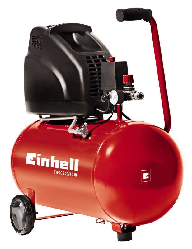 The TH-AC 200/40 OF is a versatile and efficient compressor, which is ideal for occasional jobs. This oil-free air compressor does without any lubrication. It therefore requires very little maintenance and can be transported in any position. The controlled working pressure can be adjusted for numerous applications between 0 to 8 bar by means of a pressure reducer, is indicated by a pressure gauge, and can be tapped through a quick-lock coupling. With its 40 liter tank, the TH-AC 200/40 OF has sufficient reserves of compressed air ready without having to restart the motor, yet it is still compact and maneuverable. For the best possible user safety there is a non-return valve and a safety valve. A drain cock is provided for the comfortable and clean removal of condensate from the tank. For mobility and easy transportation there is a practical holding bar and two large wheels. A vibration-absorbing foot prevents mechanical shocks and reduces noise generation. Complete with a 10-year guarantee against rusting through of the solid, long-lasting tank.