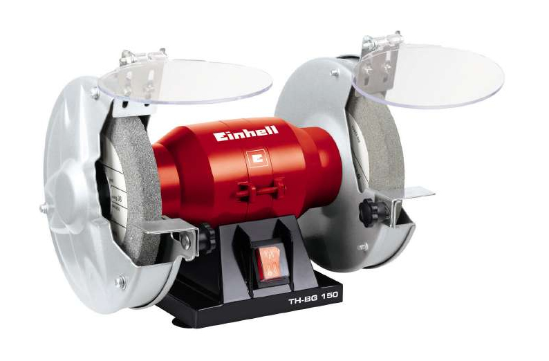 The TH-BG 150 bench grinder is perfect for little works like strong repairs, shape corrections and new polished sections, and also for corrective works, resharpening or cutting. The integrated rubber bumpers, the adjustable work supports and the robust compact metal construction care for a safe and durable use of this device. The TH-BG 150 bench grinder is equipped with four rubber bumpers to grant a safe and low-vibration stand. The integrated adjustable work supports provide various applications for do-it-yourselfers. The robust compact metal construction and the precise ball bearings ensure a long service life and exact work. The adjustable spark reflectors and the guard hoods with closed sides care for the safe operation of the device.