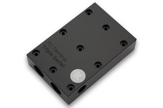 EK-FC Terminal TRIPLE Serial is a high quality interconnection for connecting three (3) EK Full-Cover waterblocks n a single, sturdy unit. Connecting multiple graphics cards FC water blocks with awkward fittings and tubing is a thing of a past!