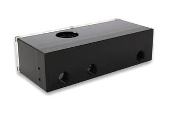 EK-BAY SINGLE Reservoir CSQ - Acetal is a simple, compact yet very efficient water reservoir. Reservoir is made of quality POM Acetal, covered by a 5mm thick, satin finish acrylic glass. Reservoir features special anti-vortex acrylic insert which effectively prevents air bubbles from re-entering the loop. As a result high flow rates of up to 250L/h (1GPM) are possible with this reservoir. Reservoir features G3/8 threaded filling port, an appropriate plug is enclosed. Reservoir fits in majority of computer chassis and occupies only a single 5.25" drive bay. No boring or sawing is necessary. This reservoir is fully air- and waterproof once closed with the enclosed plugs therefore no water can evaporate.
