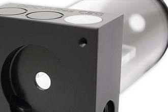 This top features three G1/4 threaded ports of which one is inlet and two are outlets. By using the enclosed EK-Extender G1/4 installation of virtually any G1/4 thread fitting/barb is possible. EK recommends EK-PSC series compression fittings.