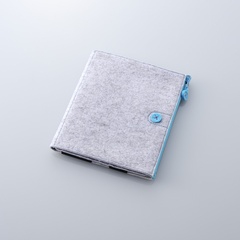 Felt case for iPad 2. Soft felt texture material protects iPad2 from dirt and scratches. Handmade style stitching and buttons. Includes a fitted hand-holder for your left hand sewn into the case. Maintain a secure sense of stability while using your iPad2. Material: Polyester.