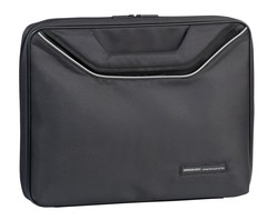 This compact laptop carrier has a padded laptop compartment made of special Zeroshock material which absorbs blows from any direction. The front zip pocket offers additional storage space, as does the easily accessible compartment on the back. Can also be used with the removable carrier handles as a protective cover for a laptop in a normal briefcase, or for carrying under the arm for short distances. Zeroshock material: Viscoelastic polyurethane (compared with conventional polyurethane foam, viscoelastic polyurethane with its extremely low rebound elasticity, offers unequalled shock absorbance. In contrast to normal polyurethane, viscoelastic polyurethane guarantees to absorb shocks of up to 100G) Measurements: WxDxL) 400x47x310mm, Laptop Compartment: (WxDxL) 380x45x300mm. Colour: black.