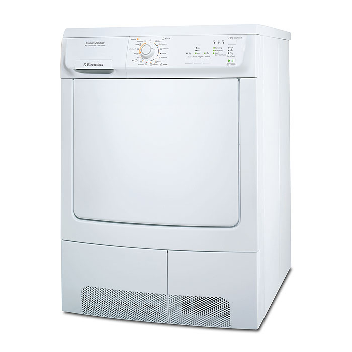 Electrolux EDC67550. Case design: Freestanding, Loading type: Front-load, Drying system: Condensation. Drum capacity: 7 kg, Noise level: 62 dB. Delay start (max): 9 h. Energy efficiency class: B, Energy consumption: 3.92 kWh, Heat source: Electric. Width: 600 mm, Depth: 580 mm, Height: 844 mm
