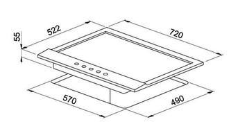 Gas hob 75 cm, built-in, 720x522mm, Antracite 59black_knobs