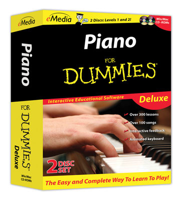 eMedia Piano For Dummies Deluxe gives you everything you need to get started on piano or keyboard and more! This two disc set includes Piano For Dummies Level 1 & Level 2 CD-ROMs. Over 300 step-by-step lessons take you from basics to reading music notation, playing melodies, harmonies, scales and much more! Instant Feedback listens to your playing and highlights notes played correctly in melodies so you can learn faster. You’ll progress at your own pace as you receive instruction in full-motion videos. Enjoy playing along with live recorded songs or have fun playing with accompaniments that you can slow down or speed up. Your instructor is professional pianist and teacher Irma Irene Justicia, M.A., who has taught at the renowned Juilliard School of Music. The excellent teaching she offers in this method will help you become a good piano or keyboard player and offers exceptional value.