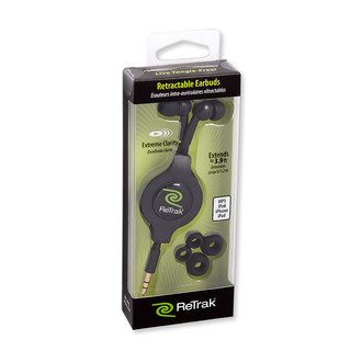 Carry a high fidelity sound studio in style wherever you go with the ReTrak retractable stereo earbuds. Just pull the exact length you need from the retractable 3.9' cable so there won't be any extra cable hanging while you work, exercise, or drive. The universal plug connects to your iPod or almost any MP3 player to enjoy your favorite music anytime, anywhere.