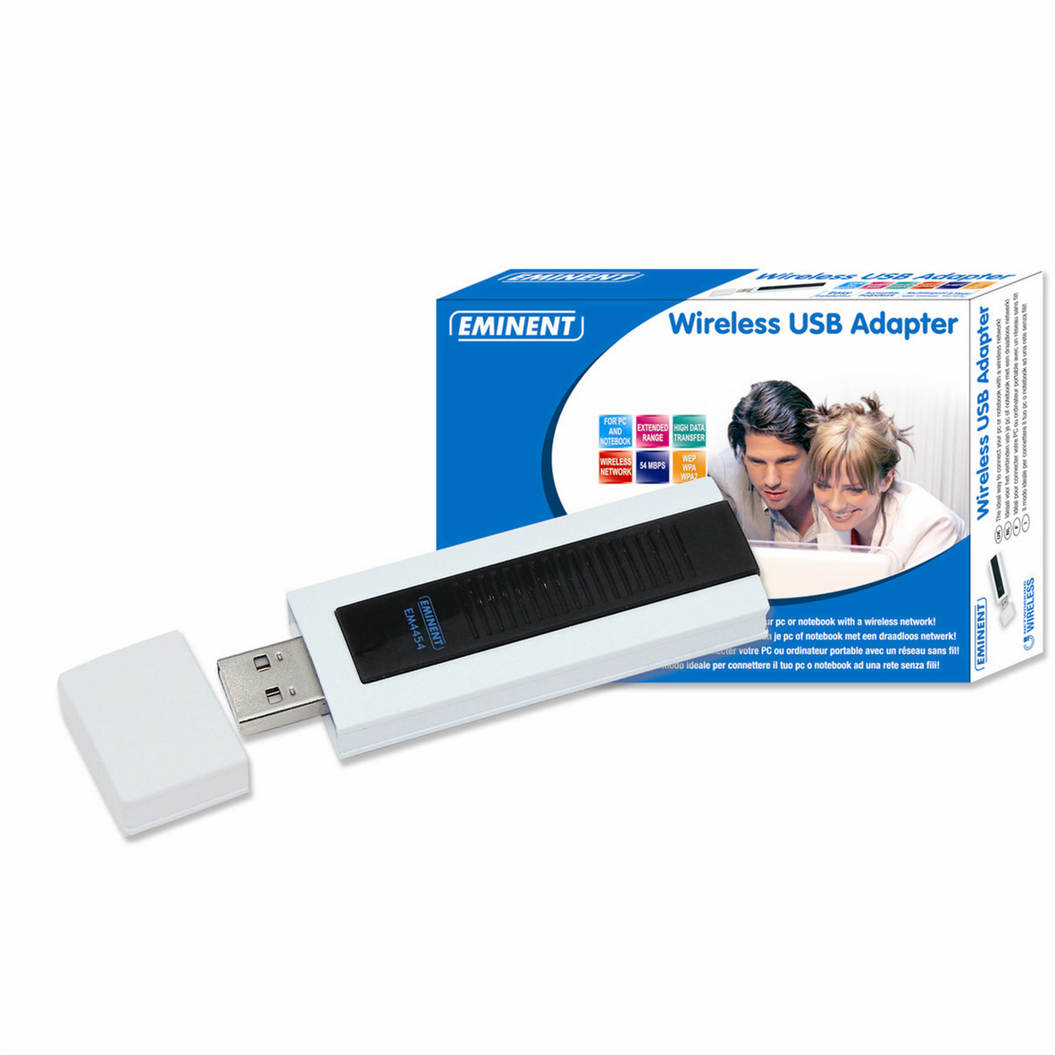 The Wireless USB Adapter is full of advanced security features. In this way your data will actually remain your data. The Eminent Wireless USB Adapter: Allow your desktop computer or notebook access to a wireless network fast and easy!