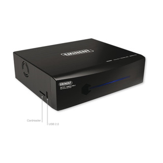 The Eminent HD media player EM7195 hdMEDIA supports an optional internal hard disk (SATA) that you can easily place inside thanks to the patented quick-mount system. The high speed USB 3.0 port makes it easy to connect the EM7195 to your pc to be filled with movies, music and pictures. And if you need more storage, simply connect a USB stick, SD/SDHC card or second hard drive and display your media files on your television. The Eminent HD media player EM7195 hdMEDIA DVB-T also supports a broad range of mass-storage devices like digital cameras, camcorders, and portable music players, allowing you to directly connect by USB and play back the media stored on them.