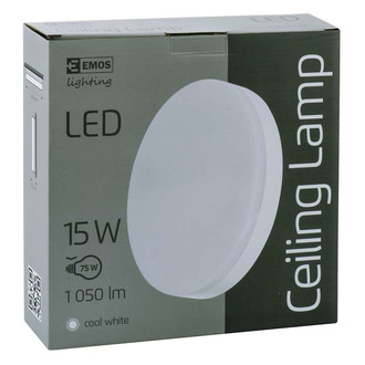 Emos ZM4301. Proper use: Indoor, Colour of product: White, Glass colour: White. Total power: 15 W, Luminous flux: 1050 lm, Included bulb(s) type: LED. Beam angle: 120°. AC input voltage: 220-240 V, AC input frequency: 50/60 Hz. Height: 53 mm, Diameter: 22 cm