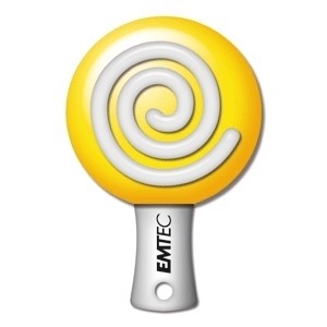 M300 Lollipop 2GB EMTEC M300 USB Drives feature a whimsical swirl design available in five fun colors. Each "Lollipop" drive comes with a cap holder, attachable to the drive with a small, beaded chain, so you will never lose the cap! Lollipop USB Drives are available in shades of red, orange, yellow, blue and green.