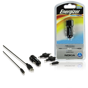 Energizer EZ-NOHT01. Charger type: Auto, Charger compatibility: Mobile phone, Power source type: Cigar lighter. Colour of product: Black. Package dimensions (WxDxH): 103 x 68 x 190 mm