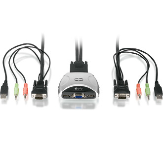 - controls 2 PCs from a single console(Keyboard/Mouse) over USB via KVM combo cableset (USB+ 2 x 3,5mm jack for earphone).