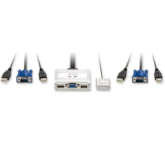 -The new Cable KVM Switch 2 Port USB with remote control is an efficient and space-saving switch to control 2 PCs via a cable combo kit on your desk. The wired remote control provides a comfortable and easy way of switching between the connected PCs.