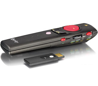 - PowerPoint presentation control, laser pointer and 360° mouse function combined with a remote control.