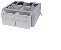 This drawer is manually operated (key-lock only). A separately ordered Drawer Travel-Stop accessory is recommended if cart is configured with two or three tall drawer rows.