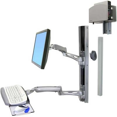 This is a complete solution that accommodates an LCD, keyboard and CPU while providing vertical and side-to-side motion. It is perfect for space-constrained areas: simply fold the keyboard and LCD tight against the wall when not in use.