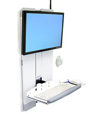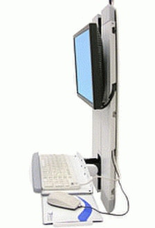 - Ergonomic negative-tilt keyboard tray with left or right mouse tray ensures wrists remain in a neutral position during data entry