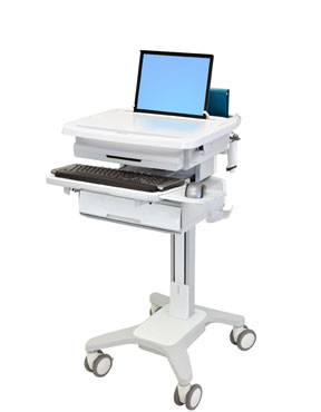 Patient Healthcare Delivery (PHD): Auto-locking drawer enables simple and efficient non-controlled medication management at the point-of-care. This innovative, truly ergonomic and easy-to-maneuver laptop healthcare cart features sit-to-stand height adjustment and an adjustable back-tilt keyboard tray.