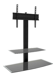 - Screen floor stand with a shelf for peripherals