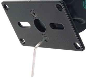 Adjustable tiltable wall mounting bracket in vertical and in horizontal plane with a progressive inclination of 4” through a nylon wheel joint. Thanks to the 123x68mm rotational steel plate. distance 48-84mm, it’s possible to attach a loudspeaker to this bracket lwith a horizontal and vertical fixing system. 200x105mm. wall plate with 6 Ø 8mm holes for bracket attachment.