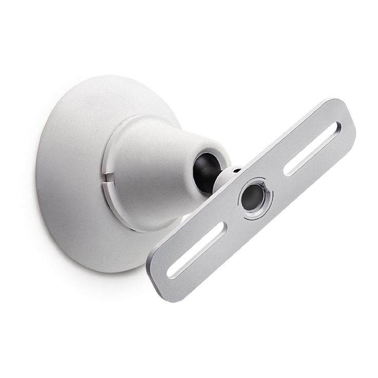 Adjustable wall mounting bracket in fiberglass nylon structure. Speaker fixing plate 120x36x4mm ready to fix, with 4 Ø 6,5 holes – distance 42/102mm. The loud speaker is tiltable (± 25°) by adjusting the central part of the swivel, fixable by its spanner which is supplied with the bracket. Ø 95mm wall plate with 2 Ø 4,5mm holes to fix bracket.