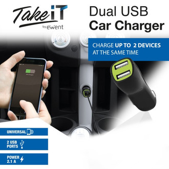 Charge up to 2 devices at the same time with the TakeIT EW1275 2-Port USB Car Charger. Your smartphone, tablet, MP3 player, camera or other USB devices are charged on the go. The USB charger can be used in both cars and trucks and needs to be plugged into the cigarette lighter adapter. The EW1275 is equipped with over temperature protection, over voltage protection, over current protection and short circuit protection.