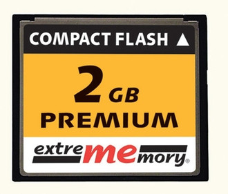 Extrememory 2GB CF Card 40x Premium. Capacity: 2 GB, Flash card type: CompactFlash, Read speed: 6.7 MB/s. Dimensions (WxDxH): 36.4 x 3.3 x 42.8 mm