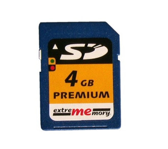 Extrememory 4GB SD Card Premium 133x/30x. Capacity: 4 GB, Flash card type: SD, Read speed: 20 MB/s. Dimensions (WxDxH): 24 x 2.1 x 32 mm