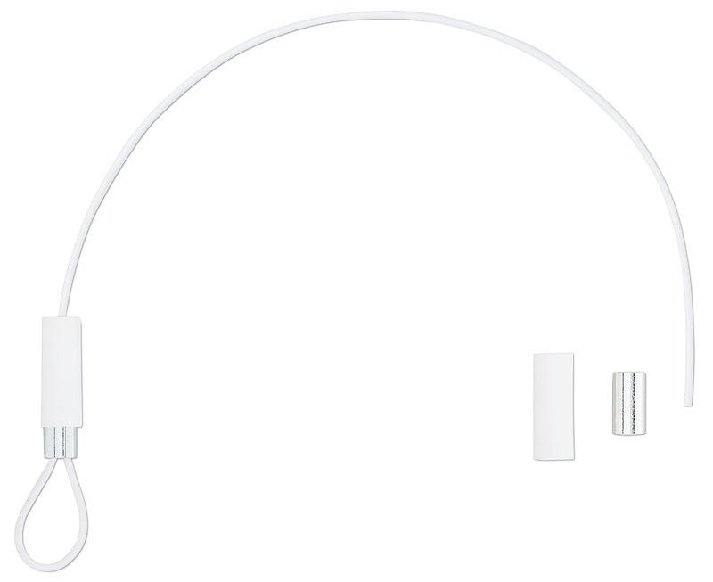 The Extron LockIt Cable Adapter Tether is designed to secure cable adapters, such as the Extron DPM-HDMIF DisplayPort-to-HDMI pigtail adapter, to its host cable, minimizing loss or theft. Simply slip one end of the 14" (35.6 cm) LockIt Adapter Tether over the adapter pigtail, and the other over the cable end, and crimp the metal sleeves to hold the tether in place. Matching white heat shrink tubing is provided to cover the metal sleeves for a clean, finished appearance. The LockIt Adapter Tether is available in white and sold in packages of 10.