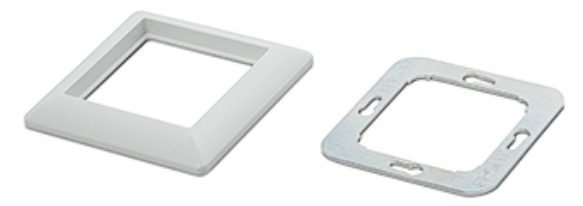 Extron Flex55 100 Mounting Kits are designed to mount onto Flex55 enclosures and EU junction boxes. Flex55 100 mounting kits include a trim frame and mounting bracket designed for a one-gang to four-gang Flex55 enclosure, and each opening holds one Flex55 or EU module. They are compatible with EU modules such as Extron DTP T EU 4K DTP transmitters and EBP eBUS EU button panels. Flex55 100 mounting kits are available in a black or white finish.