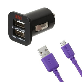 Car charger, USB 2.0 A/Micro-USB B, 2m, Black/Purple
