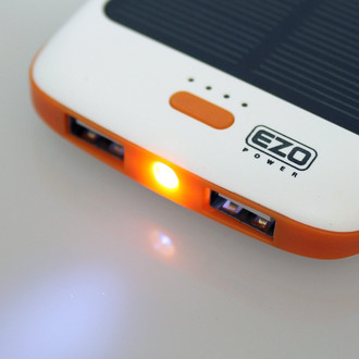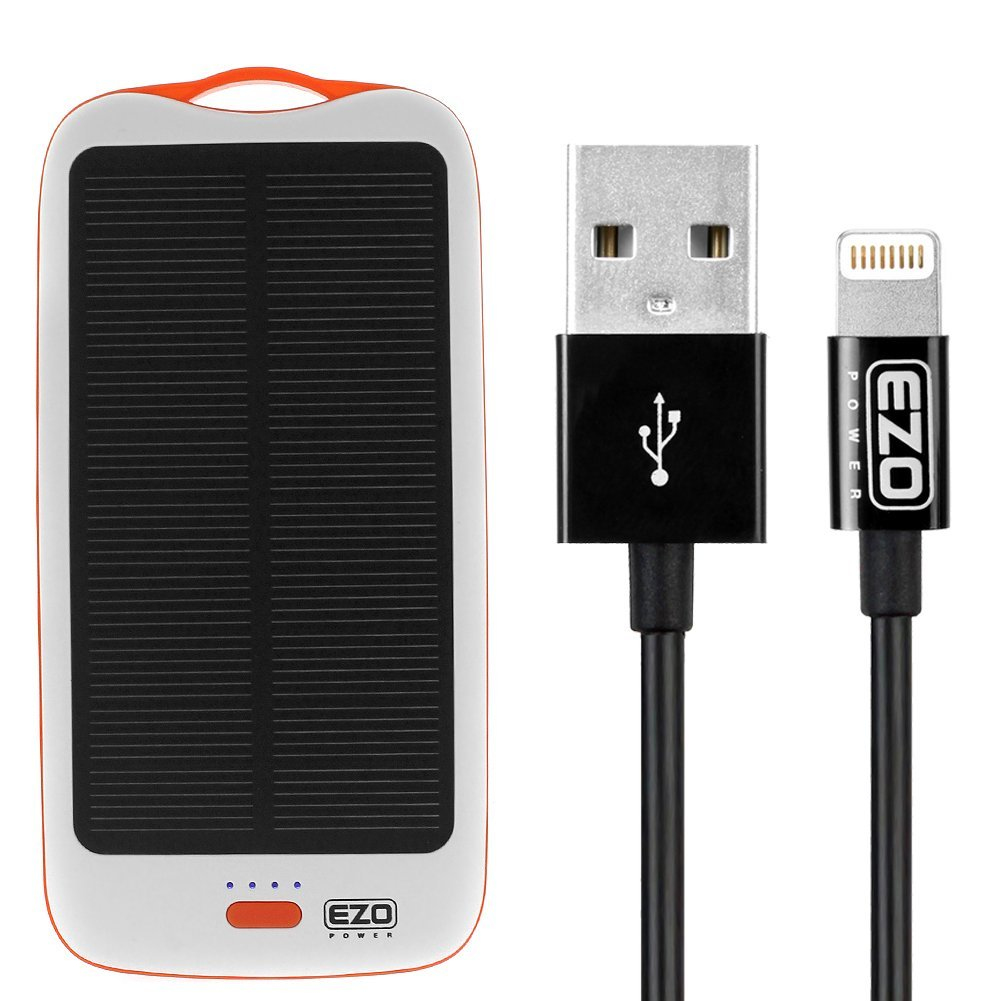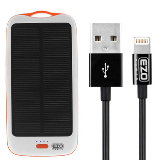 10 000 mAh, 2-Port Portable Solar External Backup Battery Charger, 8-Pin Lightning, White/Orange/Black