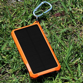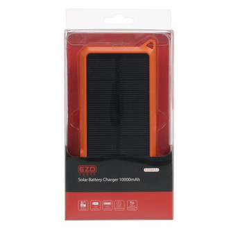 10 000 mAh, 2-Port Portable Solar External Backup Battery Charger, 12.7 cm (5 ") Eva Pouch Case, Black/Orange