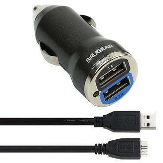 2-Port USB Car Charger Adapter, Micro-USB 3.0, Black