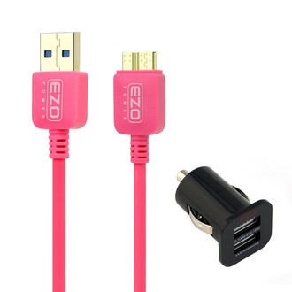 2-Port USB Car Charger Adapter, Micro-USB 3.0, Black/Pink