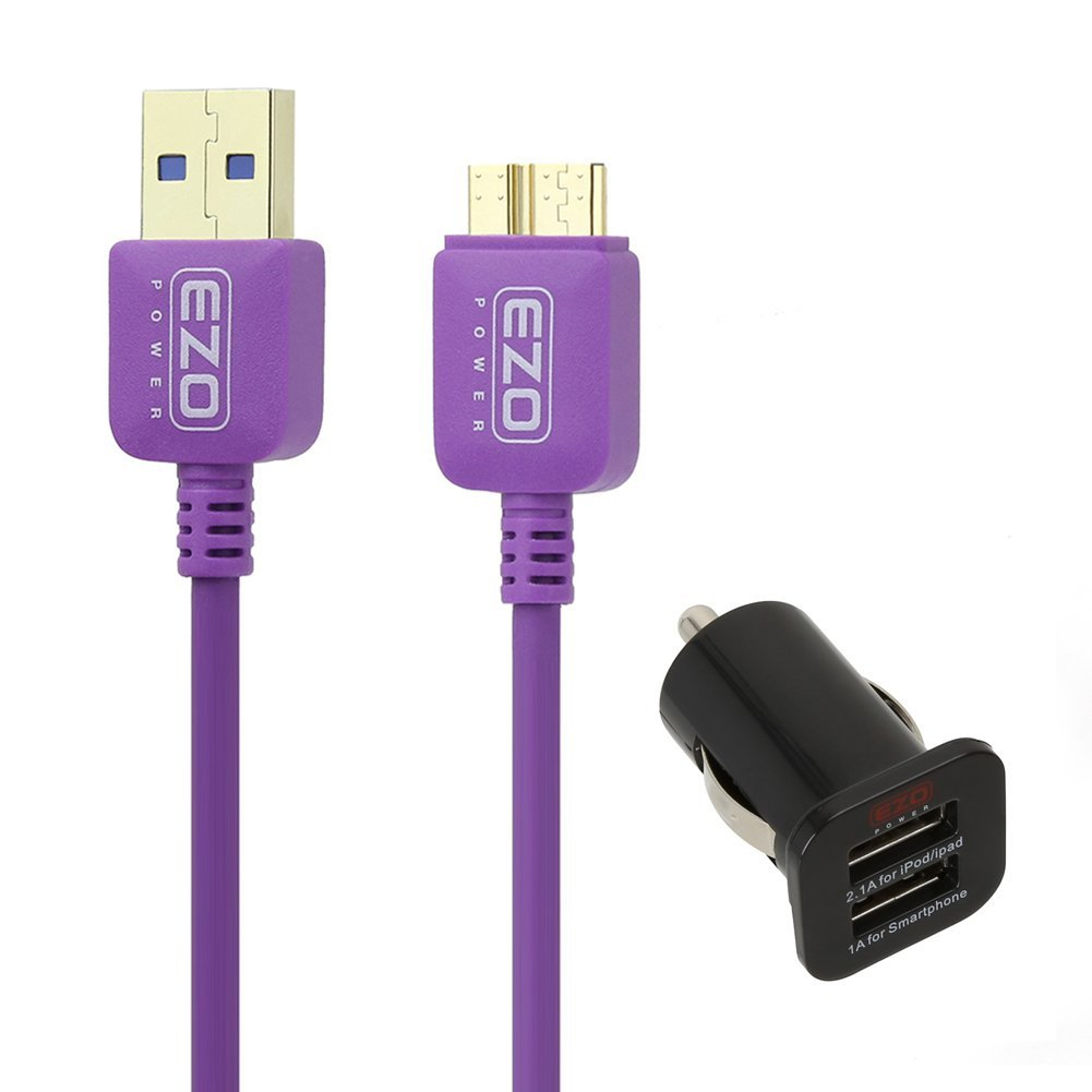 2-Port USB Car Charger Adapter, Micro-USB 3.0, Black/Purple