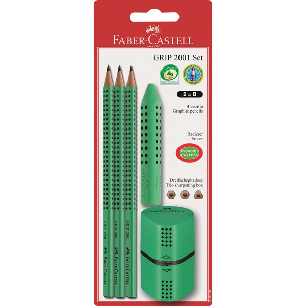 - Set including 3 GRIP 2001 graphite pencils in ergonomic triangular shape with Soft-Grip- Zone