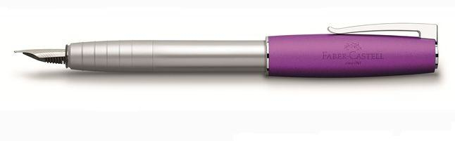 Silver metallic barrel with violet cap with spring-loaded clip. Stainless steel nib in line width M. Suitable for Cartridges and Converter.