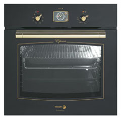 Fagor 5H-185 N Epoca. Oven type: Electric oven, Total oven(s) interior capacity: 51 L, Thermostat range (1st oven): 50/250. Colour of product: Black, Control type: Rotary. Power consumption (typical): 2.6 W, AC input voltage: 230 V, AC input frequency: 50 Hz. Width: 592 mm, Depth: 529 mm, Height: 595 mm
